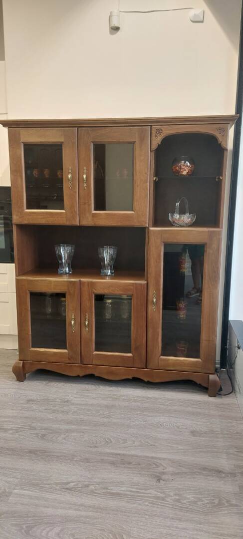 ⇒Врати и лицеви елементи : Масив Орех ⇒Подова основа и корниз: Масив Орех ⇒Корпус: Естествен фурнир Орех ⇒Байц: Вернилак 316 ⇒Панти: Blum ⇒Дърворезби ръчна изработка