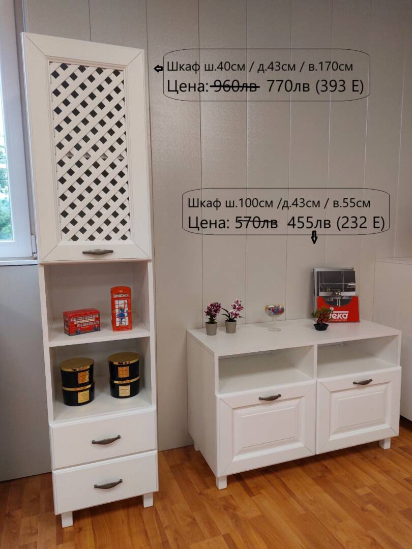 1.Шкаф – ш.40см / д. 43см /в.170см Цена: 960лв 770лв ( 393 €)